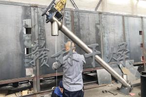 而無軸螺旋輸送機適合輸送機由粘性的和易纏繞的物料。(例如:污泥、生物質(zhì)、垃圾等)螺旋輸送機的工作原理是旋轉(zhuǎn)的螺旋葉片將物料推移而進(jìn)行螺旋輸送機輸送,使物料不與螺旋輸送機葉片一起旋轉(zhuǎn)的力是物料自身重量和螺旋輸送機機殼對物料的摩擦阻力。